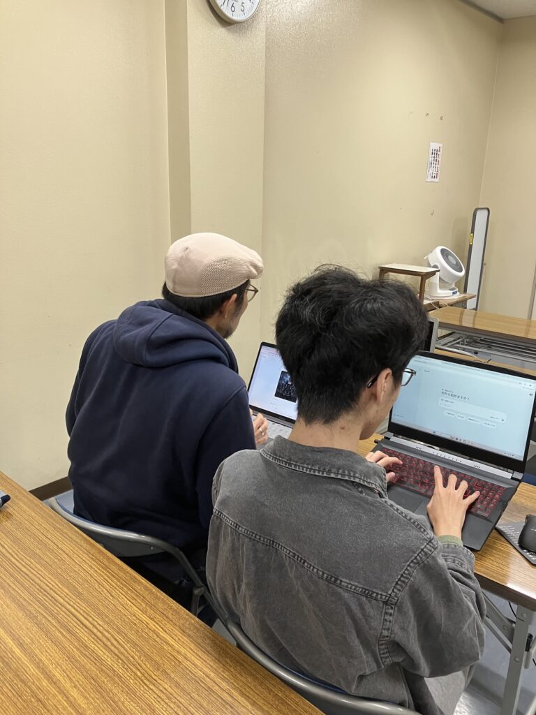 今回は常連さんばかりということで、最近取り組んでいる生成AIを使った遊び、アイデア検討や、マイクラのコマンドブロックなど、思い思いにデジタル環境で遊び、会話を楽しんでいました。
